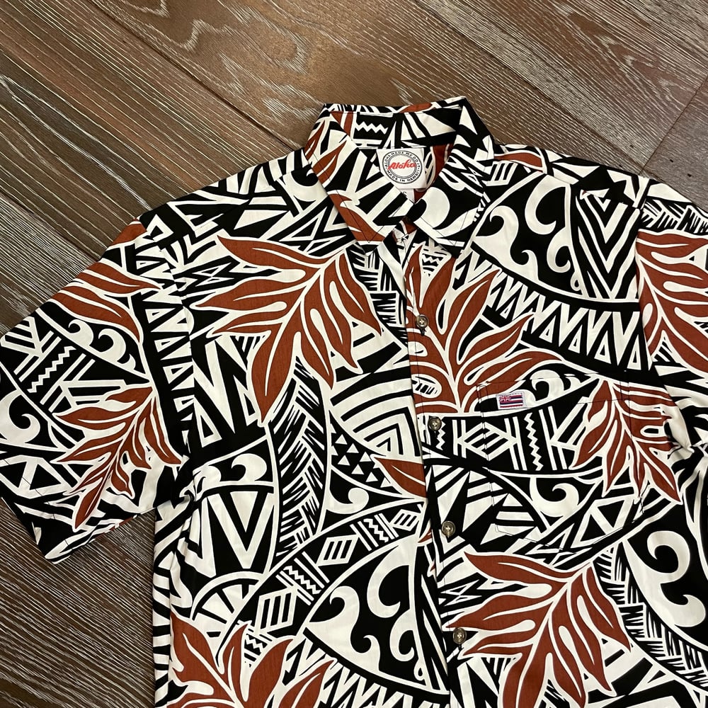 Our contemporary slim fit Aloha Shirts are tapered towards the waist for a tailored look. Made in Hawaii they feature a stand up collar, Hawaiian Flag label on the pocket, our pineapple label on the bottom left corner, and finished off with coconut buttons.